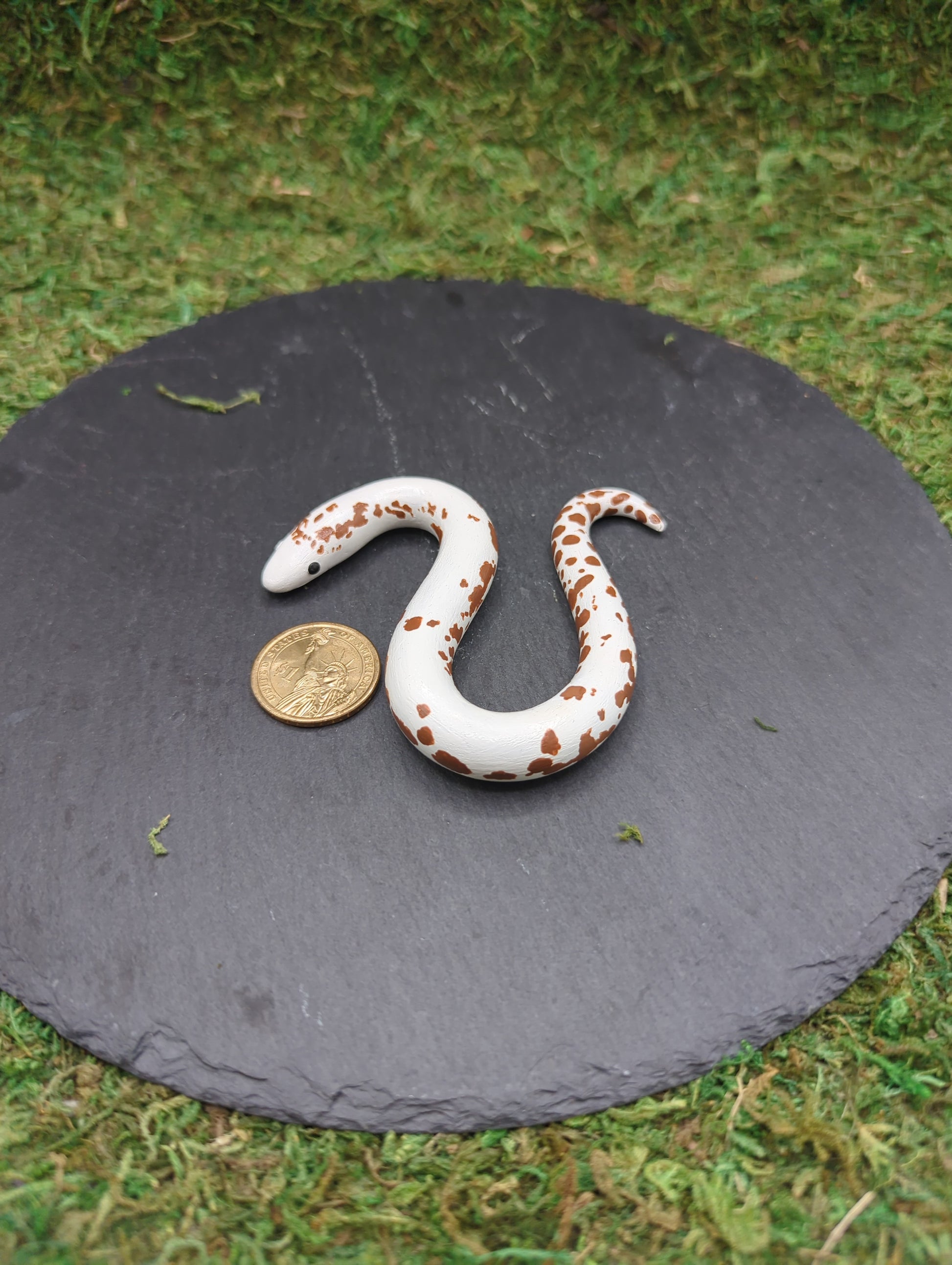 Say hello to your new sss-squishy sandboa pal! This handmade, hand-painted polymer clay sandboa snake is so realistic it might just slither off your shelf (don’t worry, it won’t). Perfectly sized and packed with personality, this charming little reptile makes for the ultimate desk buddy or conversation starter. It's the only snake you'll love to handle every day—no heat lamps required!